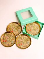 The set of 4 coasters comes in a stylish turquoise gift box, making it a perfect choice for festive gifting, weddings, housewarming, or daily use. Durable, easy to clean, and visually stunning, these coasters protect your surfaces while elevating your décor.